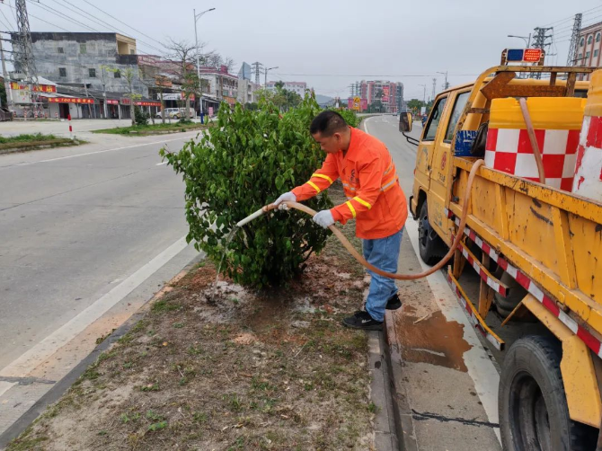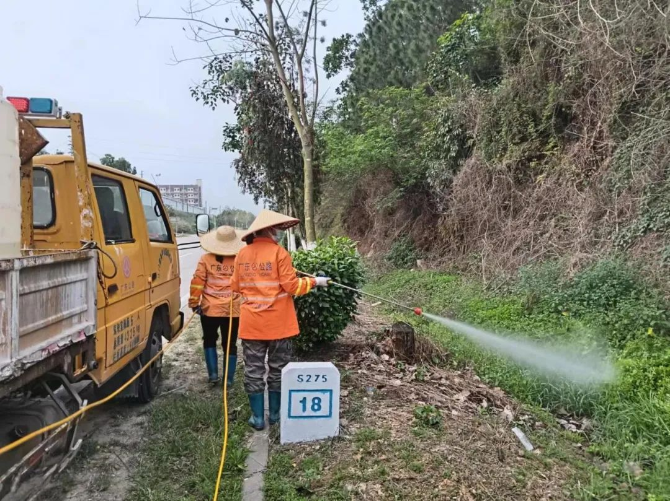 俗话说“三分种植,七分养护”。为推动“侨乡绿美公路”建设工作各项任务落地见效,开平公路事务中心做好“护绿”日常管理,扎实做好植树增绿的“后半篇文章”。