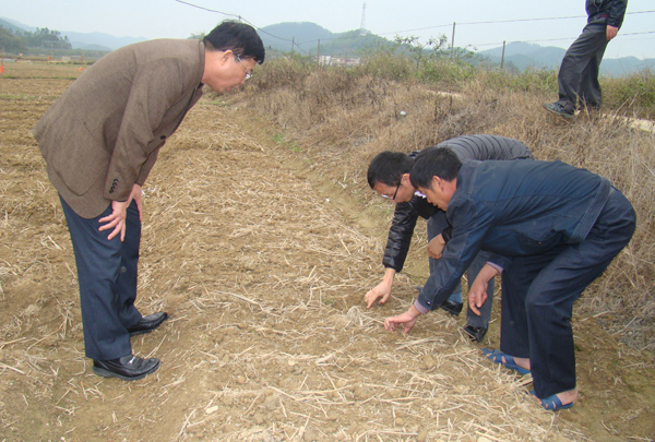 随后,梁永波主任一行到生产基地了解花生生长情况。目前,花生处于发芽出苗期,村委会书记何源俦建议台山市供销社在施肥用药方面给予技术指导。梁永波当即表态,台山市供销社综合业务股派员全程跟进产中、产后工作,确保花生生产基地建出实效,使村民能有好收成。