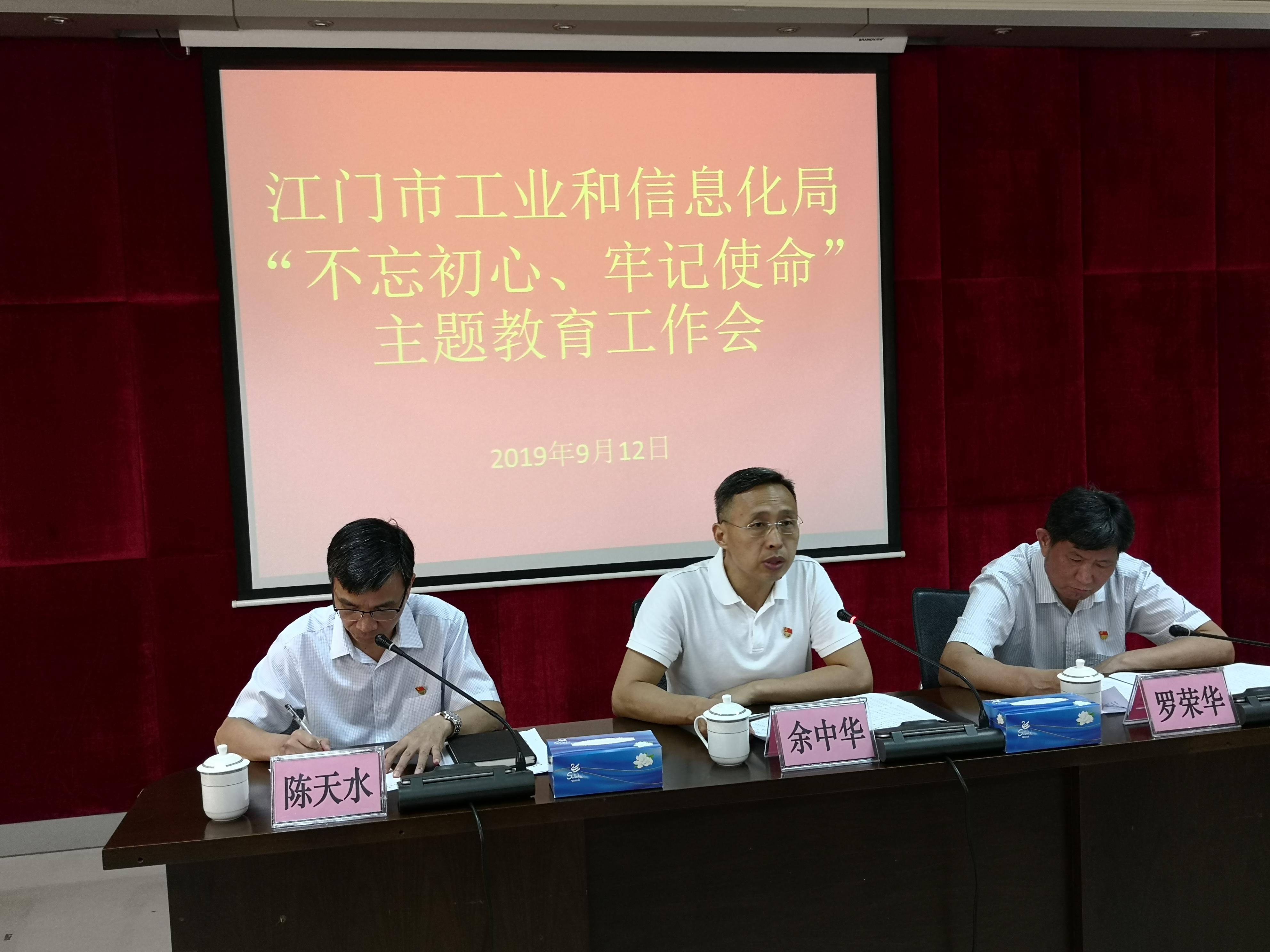 根据中央的统一部署和省委、市委的具体要求,市工信局从9月开始,开展为期3个月的“不忘初心、牢记使命”主题教育。9月12日上午,市工信局召开“不忘初心、牢记使命”主题教育工作会议,党组书记、局长余中华进行了动员部署,市委第八指导组组长罗荣华出席会议并讲话,全局干部职工参加了会议。