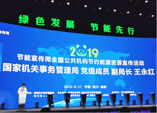 6月17日,国家机关事务管理局和四川省人民政府在成都市联合举办了“2019年节能宣传周全国公共机构节约能源资源宣传活动”启动仪式。国管局副局长王永红、四川省副省长李云泽、住房和城乡建设部城市建设司副司长张乐群出席启动仪式并致辞。国家发展改革委、教育部,各省、自治区、直辖市和新疆生产建设兵团公共机构节能管理部门,四川省公共机构节能工作协调小组成员单位有关负责同志,以及部分机关事业单位、学校、医院代表及志愿者代表等,共1000余人参加了活动。