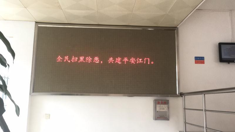 1. LED显示屏滚动播放 “全民扫黑除恶,共建平安江门”标语