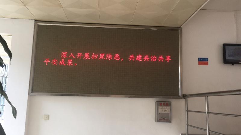 2. LED显示屏滚动播放“深入开展扫黑除恶,共建共治共享平安成果”标语。