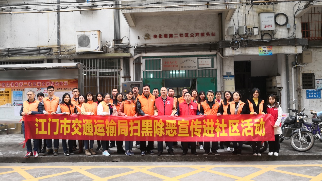 为深入推进扫黑除恶专项斗争工作,引导广大群众积极举报有关“涉黑涉恶涉乱”线索,1月9日下午,市交通运输局结合党员义工活动组织组织相关人员到蓬江区良化新村南二社区广场开展“扫黑除恶宣传进社区”宣传活动。本次宣传活动由市交通运输局副局长、局扫黑除恶专项斗争领导小组副组长谢家骏,局副调研员、局扫黑除恶专项斗争领导小组副组长兼办公室主任王礼辉、局扫黑办副主任华双胜以及局领导、各科室及(执法分局)执法分局工作人员,一共29人参加了这此次宣传活动。
