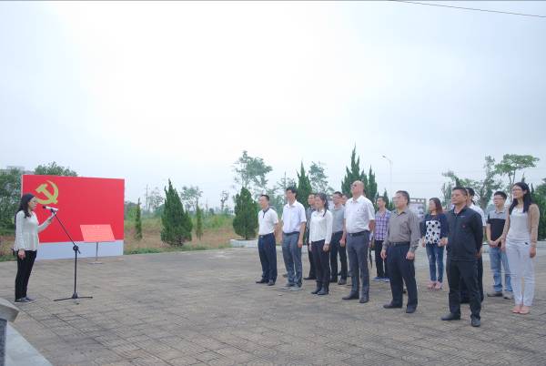 在烈士纪念碑前,全体党员整齐列队,佩戴党员徽章,面向党旗肃立,气氛庄严。在总支部书记容兆安同志的领誓下,大家纷纷举起右拳,高声宣誓。80字的铮铮誓言,是每一名共产党员入党初心的真实写照,提醒我们不忘初心,走得再远都不能忘记来时的路、不能忘记为什么出发。