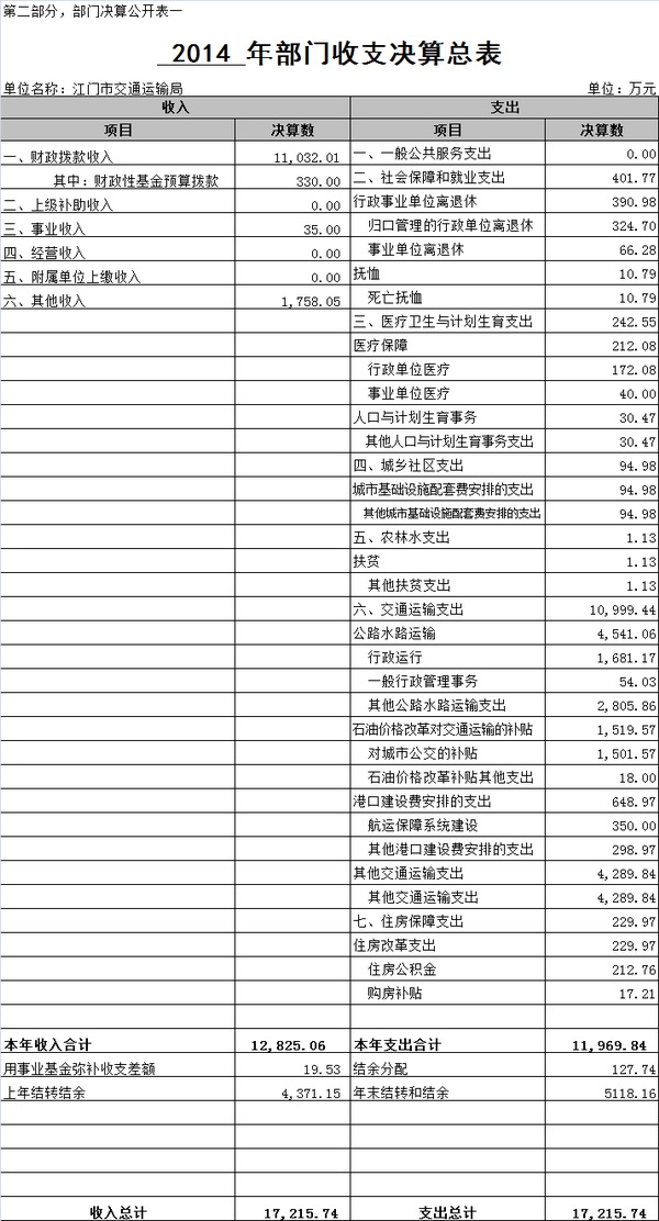 2014年部门支出决算17,215.74万元。其中:财政拨款收入安排的支出10,664.70万元,包括: