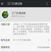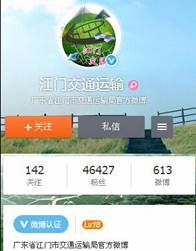 (四)畅通公开渠道。2015年我局新浪政务微博(//weibo.com/jmsjtysj)和腾讯政务微博(//t.qq.com/jmsjtysj2013)推送了各种多元化的动态信息和行业资信,通过江门交通运输信息简报、江门日报、江门电视台等方式畅通公开渠道,拓展交通运输政务信息的影响力。同时通过部门网站和政府热线12345为群众提供政策咨询、受理交通诉求和投诉服务,积极解决群众所关心的热点问题。