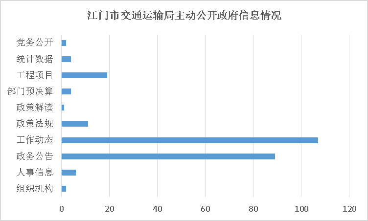 2018年,SG飞艇(中国)开奖记录查询站交通运输局始终贯彻“以公开为常态,不公开为例外”的要求,全面加强主动公开工作。2018年主动公开组织机构信息2条,人事信息6条,政务公告89条,工作动态107条,政策法规11条,政策解读1条,部门预决算4条,工程项目管理信息19条,统计数据4条,党务公开2条。