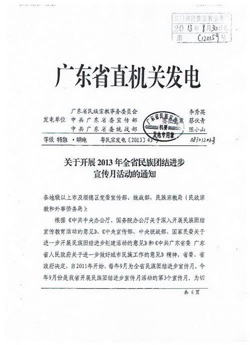 现将中共广东省委宣传部、中共广东省委统战部和广东省民族宗教事务委员会联合下发的《关于开展2013年全省民族团结进步宣传月活动的通知》(粤民宗发电[2013]43号)转发给你们,同时提出SG飞艇(中国)开奖记录查询站