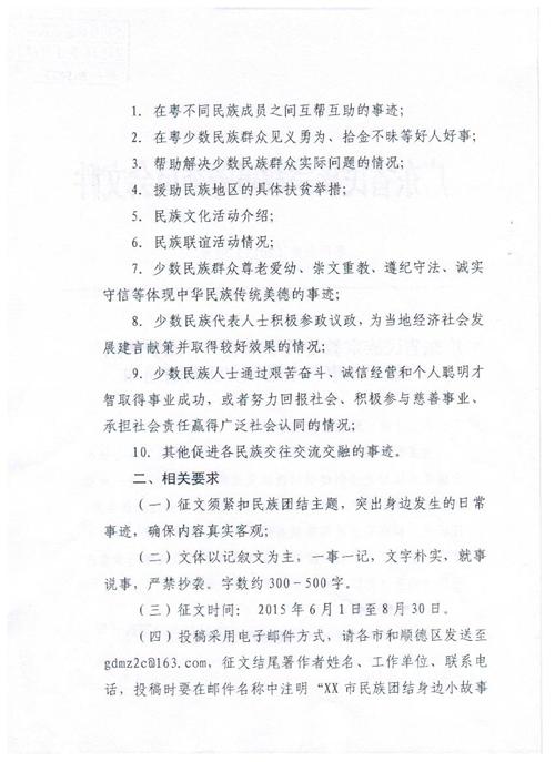 附件:广东省民族宗教委关于开展“‘民族团结’身边小故事”主题征文活动的通知