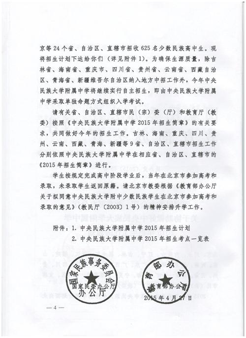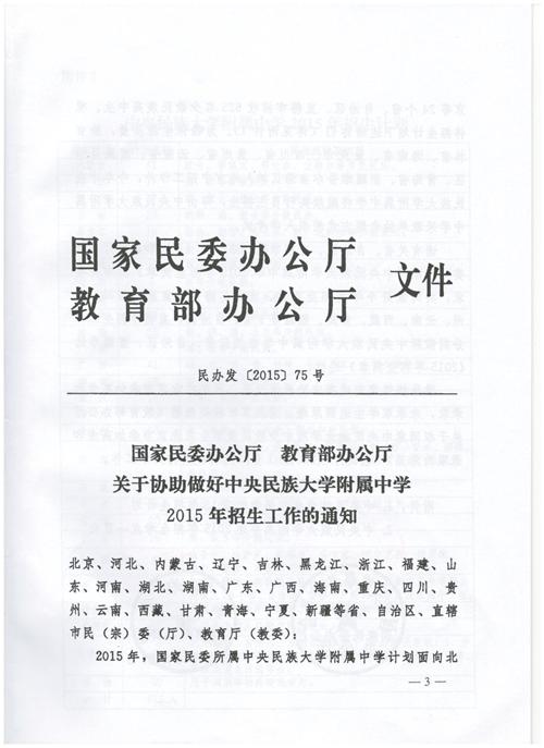 附件:《广东省民族宗教委 广东省教育厅转发国家民委办公厅 教育部办公厅关于协助做好中央民族大学附属中学2015年招生工作的通知》
