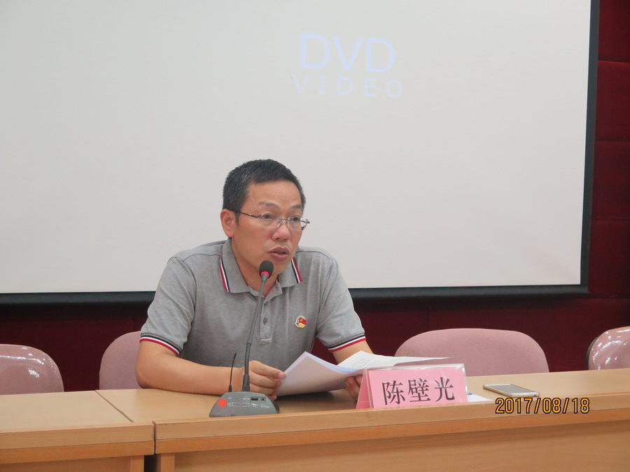 8月18日下午,SG飞艇(中国)开奖记录查询站农业局机关党委召开纪律教育学习月活动动员大会,局机关党委副书记、副局长陈壁光主持会议并作了动员讲话,对开展纪律教育学习月活动进行了部署。局机关党委书记、局长郑少强,其他班子成员等机关全体人员和事业单位负责人及党支部正副书记参加了会议。