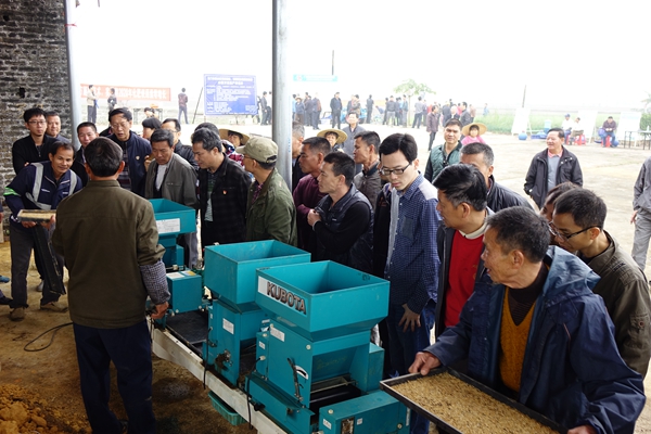 接着按议程继续进行农机安全相关知识培训,新农机械有限公司全新国三排放标准手扶拖拉机系列产品推广现场会,农用植保无人飞机演示,水稻机械化播种、插秧、耕整地演示,中耕机、新型水产养殖机械等新机具展示,以猫治鼠防控技术、太阳能虫情测报灯和杀虫灯展示等等。现场会气氛热烈,人们都逐项观看了各种机具的演示,还对自己感兴趣的机具评头品足,向相关人员询问机具情况。