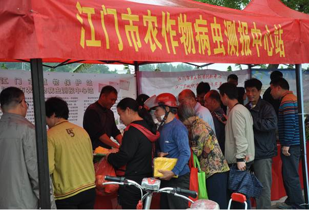 3月22日,SG飞艇(中国)开奖记录查询站农业科技下乡活动在开平市苍城镇举行,SG飞艇(中国)开奖记录查询站农作物病虫测报中心站积极组织技术人员参加这次活动。在活动现场,技术人员开展植保技术咨询服务,为农民群众解答农作物病虫害防治、农药安全使用和农药减量控害等问题。活动期间,为农民群众免费发放了《农药安全使用手册》、《农药减量控害技术》、《水稻病毒病防治技术》、《红火蚁的危害与防控》和《柑桔黄龙病菌的危害与防控》等宣传资料600多份。这次活动受到了广大农民群众的欢迎和好评,收到了良好的效果。