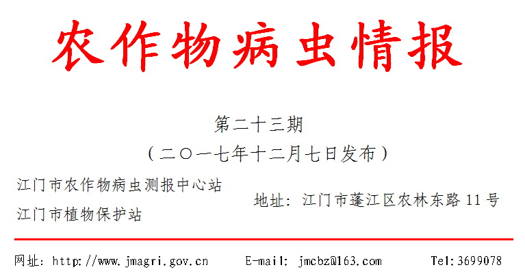 据我站各测报点近期对新会区会城、双水,开平市塘口、龙胜,鹤山市共和、宅梧等镇街部分蔬菜生产基地田间调查和监测,当前蔬菜以叶菜类蔬菜为主,病虫害中等发生。主要虫害有:小菜蛾、黄曲条跳甲、菜青虫、软腐病、霜霉病等。各地应加强调查,切实抓好当前蔬菜病虫害的防治工作,确保蔬菜生产安全。