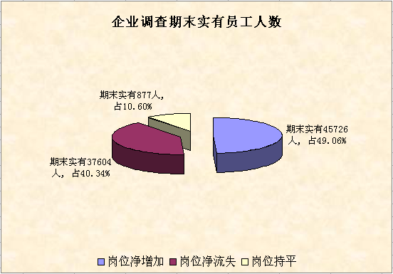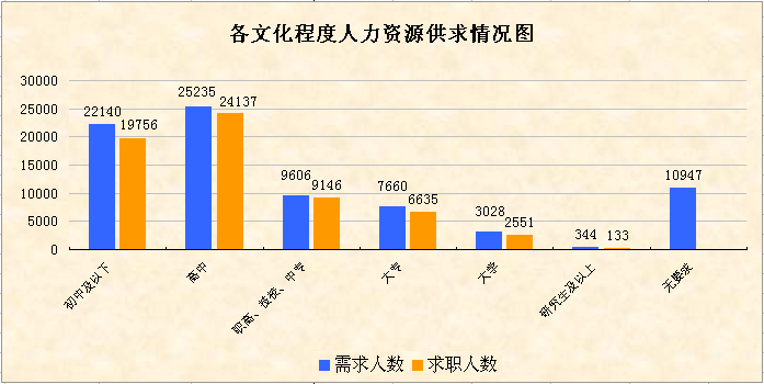 第一季度,从企业用工及人力资源服务平台信息系统和全市人力资源服务机构的数据统计,全市用人单位登记招聘职位数共69354个,登记求职人数共53212人,总体职位供求比为1:0.77(招聘职位数为1,求职人数为 0.77,下同);全市人力资源市场总体用工缺口为16142人。