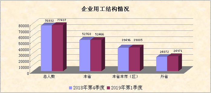 综合企业用工及人力资源服务平台信息系统、全市人力资源服务机构数据、全市450家用工定点监测企业和200家失业动态监测企业的情况和相关数据进行分析,形成2019年第一季度全市人力资源市场供求状况分析报告。