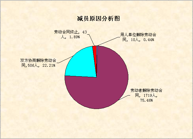 3月末全市监测企业中共有155家企业出现减员情况,共减员2278人。其中用人单位解除劳动合同的占0.44%,劳动者解除劳动合同的占75.46%,双方协商解除劳动合同的占22.21%,劳动合同终止的占1.89%。反映企业减员主要以劳动者单方面解除劳动合同的原因为主。