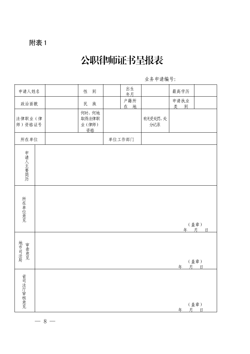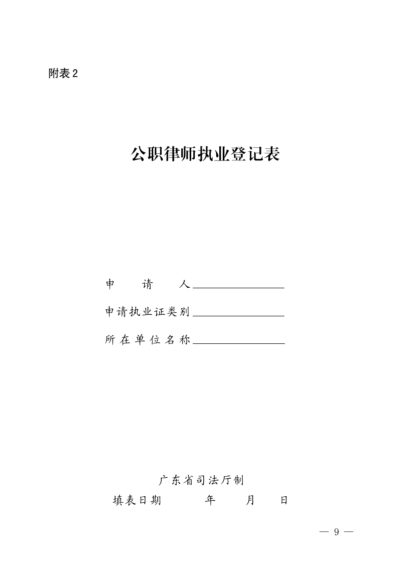 (一)《公职律师证书呈报表》(附表1)、《公职律师执业登记表》(附表2);