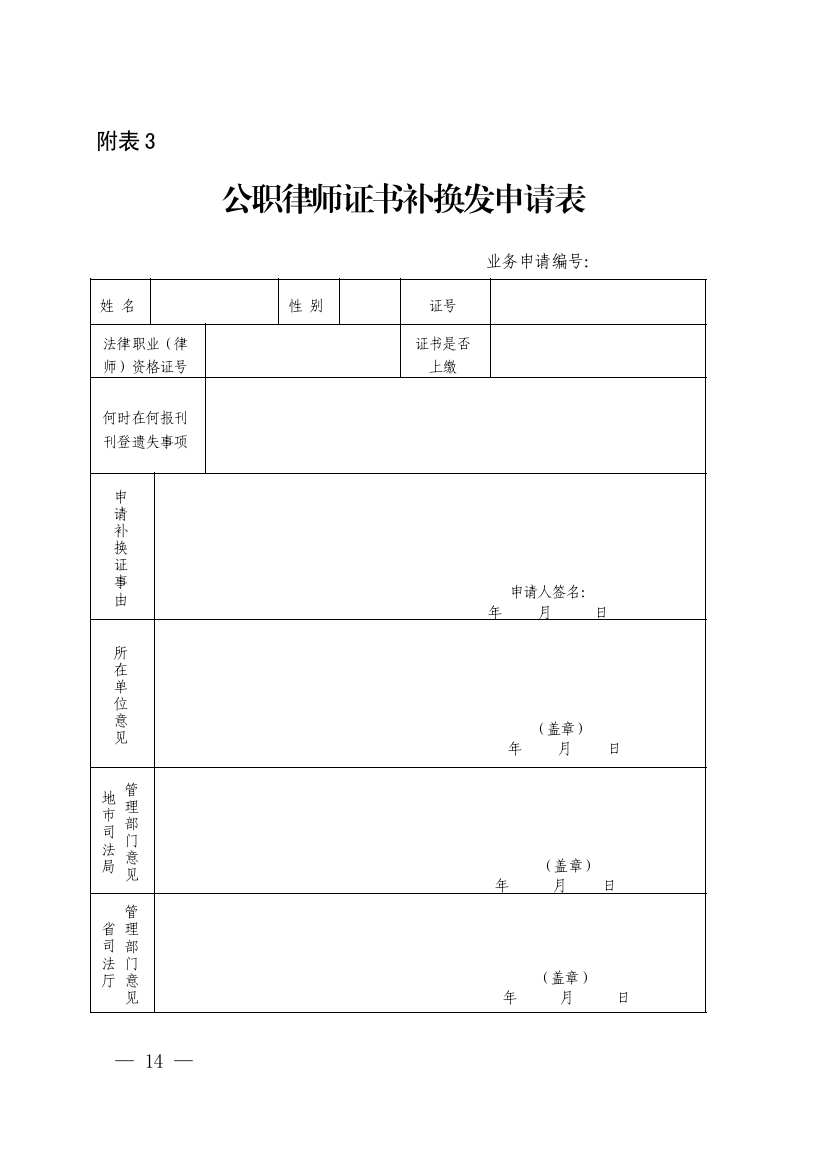 (一)《公职律师证书补换发申请表》(附表3);