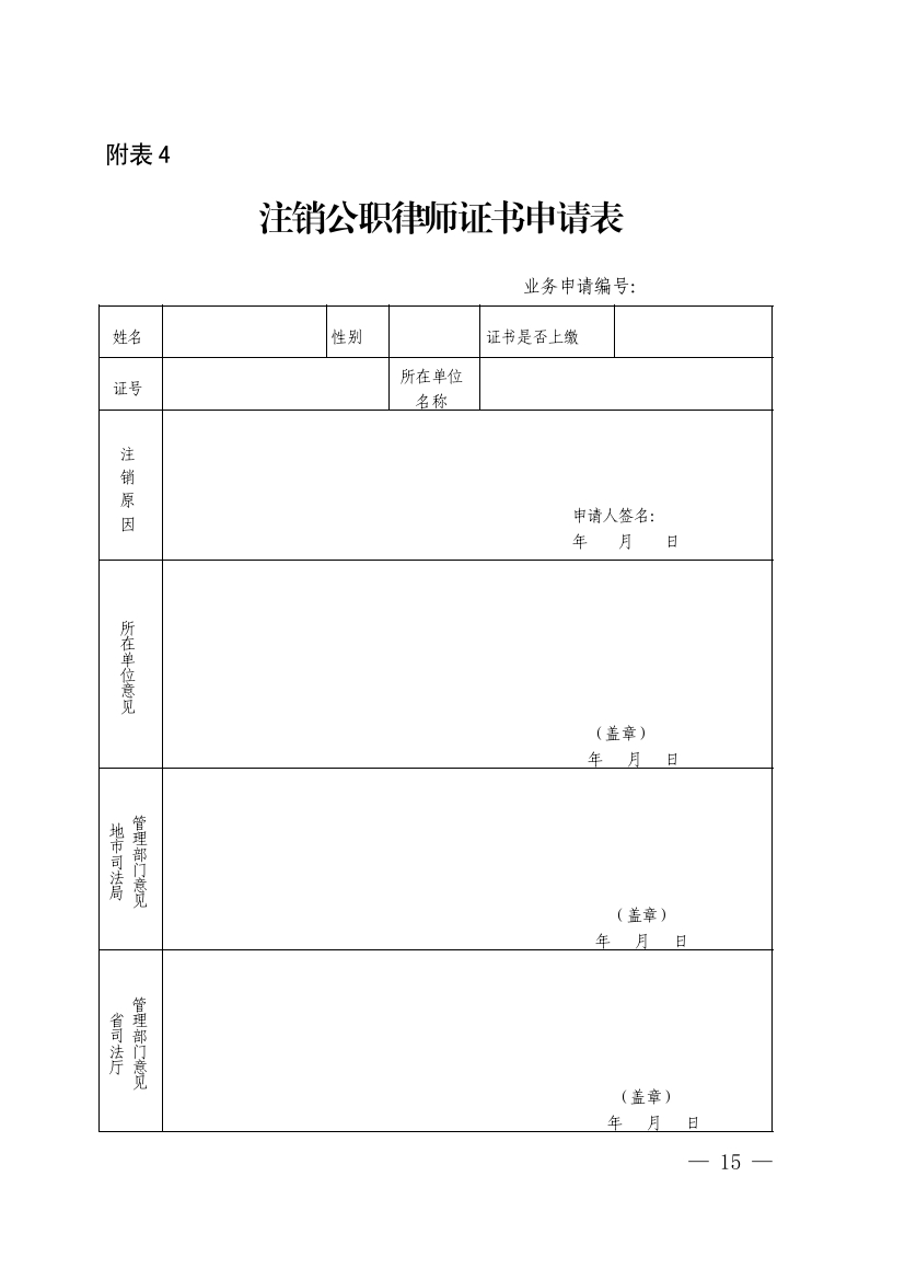 (一)《注销公职律师证书申请表》(附表4);