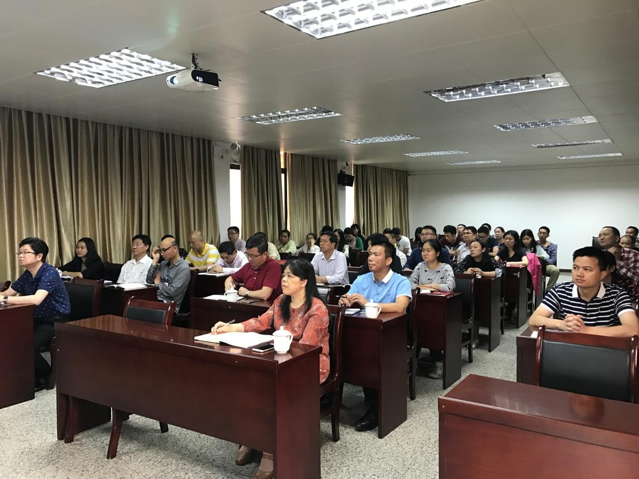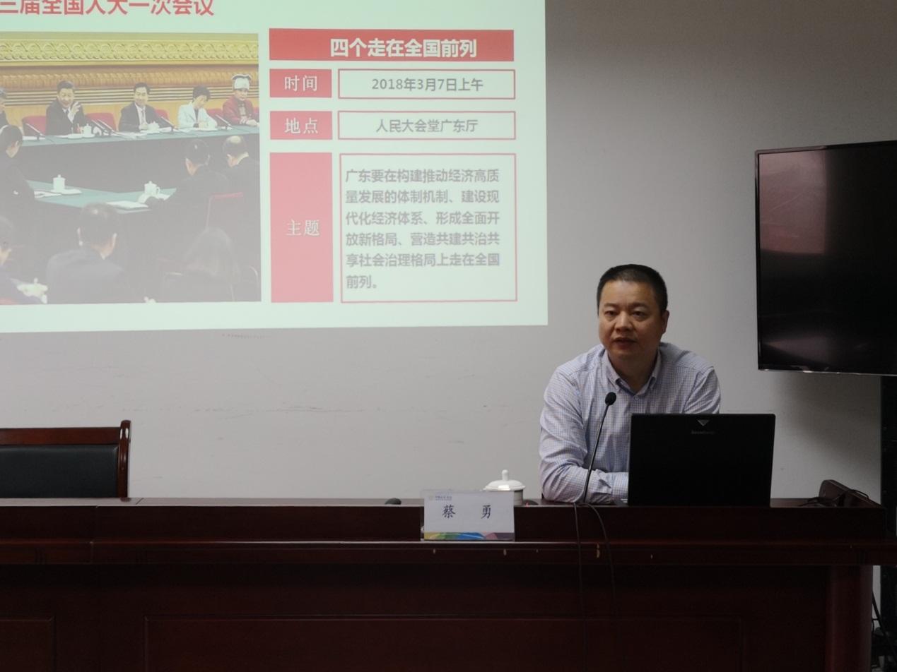 为全面系统准确学习习近平总书记在参加十三届全国人大一次会议广东代表团审议时的重要讲话精神,4月28日下午,市社保局邀请了市宣讲团成员、江门职业技术学院副校长蔡勇教授作了专题宣讲报告。市社保局60多名干部职工参加了宣讲会。