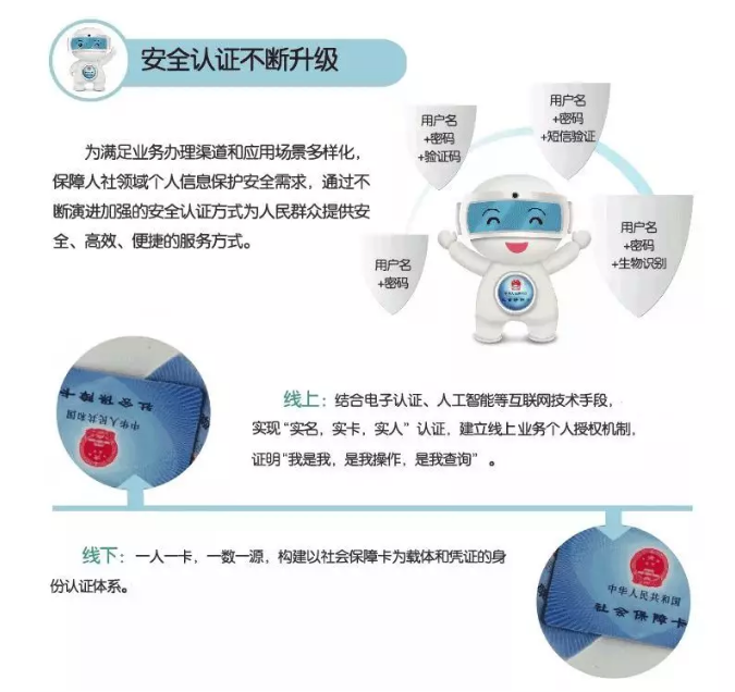 为满足业务办理渠道和应用场景多样化,保障社保领域个人信息保护安全需求,通过不断演进加强的安全认证方式为人民群众提供安全、高效、便捷的服务方式。