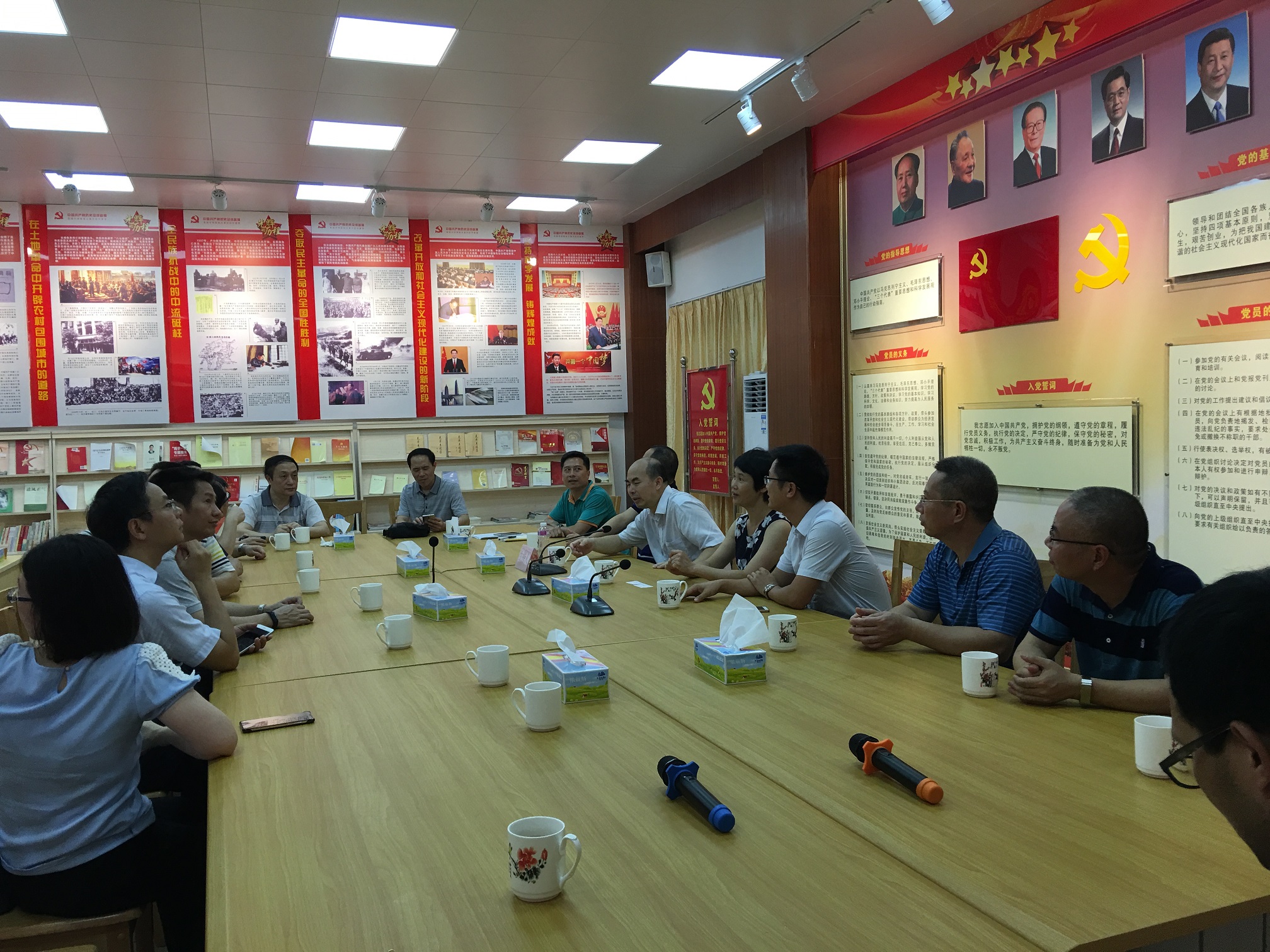 接下来学习小组前往良西镇考察学习。良西镇位于恩平市西北部,目前有21个党支部和730名中共党员。学习小组听取了镇委有关领导介绍该镇党建工作及各方面的发展情况。良西镇党建工作创新的一大亮点是党员学习室,这是一个全镇党员学习和接受教育的平台。室内挂着的墙报,书架上摆放的书籍,展示了从党的创建到解放战争的胜利、从建国初期到实现伟大复兴的中国梦时代、从党的第一代领导人到第五代领导人等等我党发展的辉煌历程,以及我国现代化建设的恢宏篇章,内容丰富翔实,读来令人深感震撼和深受鼓舞。党员们通过该平台进行集中或远程学习党的政治理论、方针政策、廉洁纪律,从而进一步坚定理想信念,提升思想纯洁度,凝聚对党向心力。