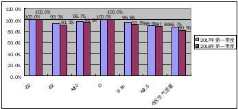 图3 2018年第一季度鹤山市区空气质量达标天数比例同比变化情况