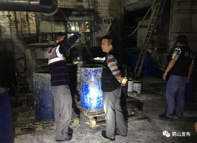 检查组对位于雅瑶镇上南工业区的化工企业进行了突查,现场检查发现鹤山市骏盈化工有限公司、鹤山市宏兴化工有限公司均存在环境违法行为,上述化工企业主要从事涂料、油漆的生产。