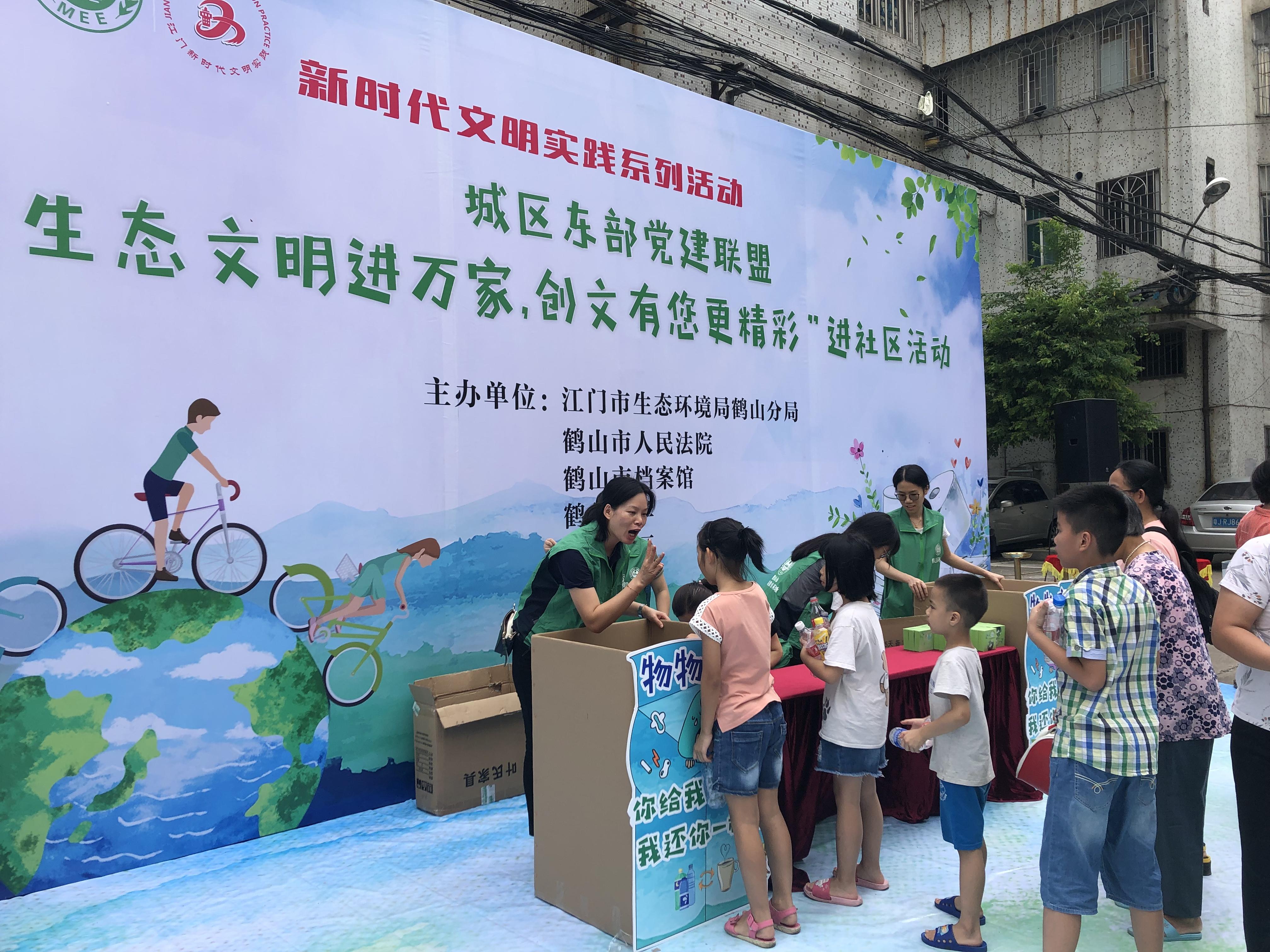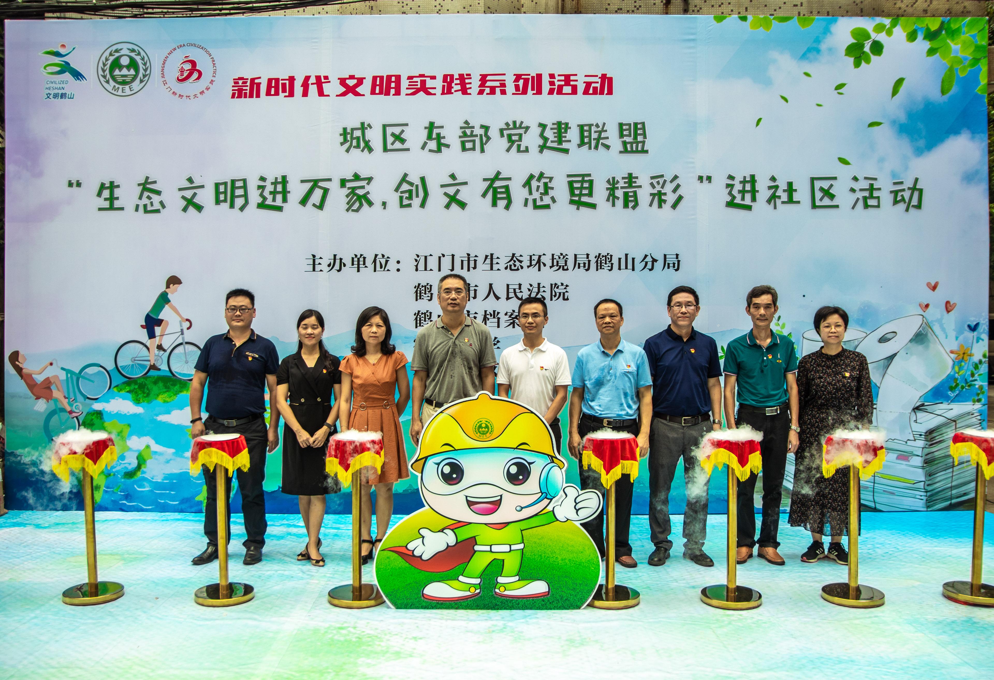 8月29日上午,SG飞艇(中国)开奖记录查询站生态环境局鹤山分局联合鹤山市人民法院、鹤山市档案局、鹤华中学等城区东部党建联盟成员单位在祥盛社区开展“生态文明进万家,创文有您更精彩”进社区活动。鹤山市委宣传部、城区东部党建联盟及有关单位负责人参加了活动。
