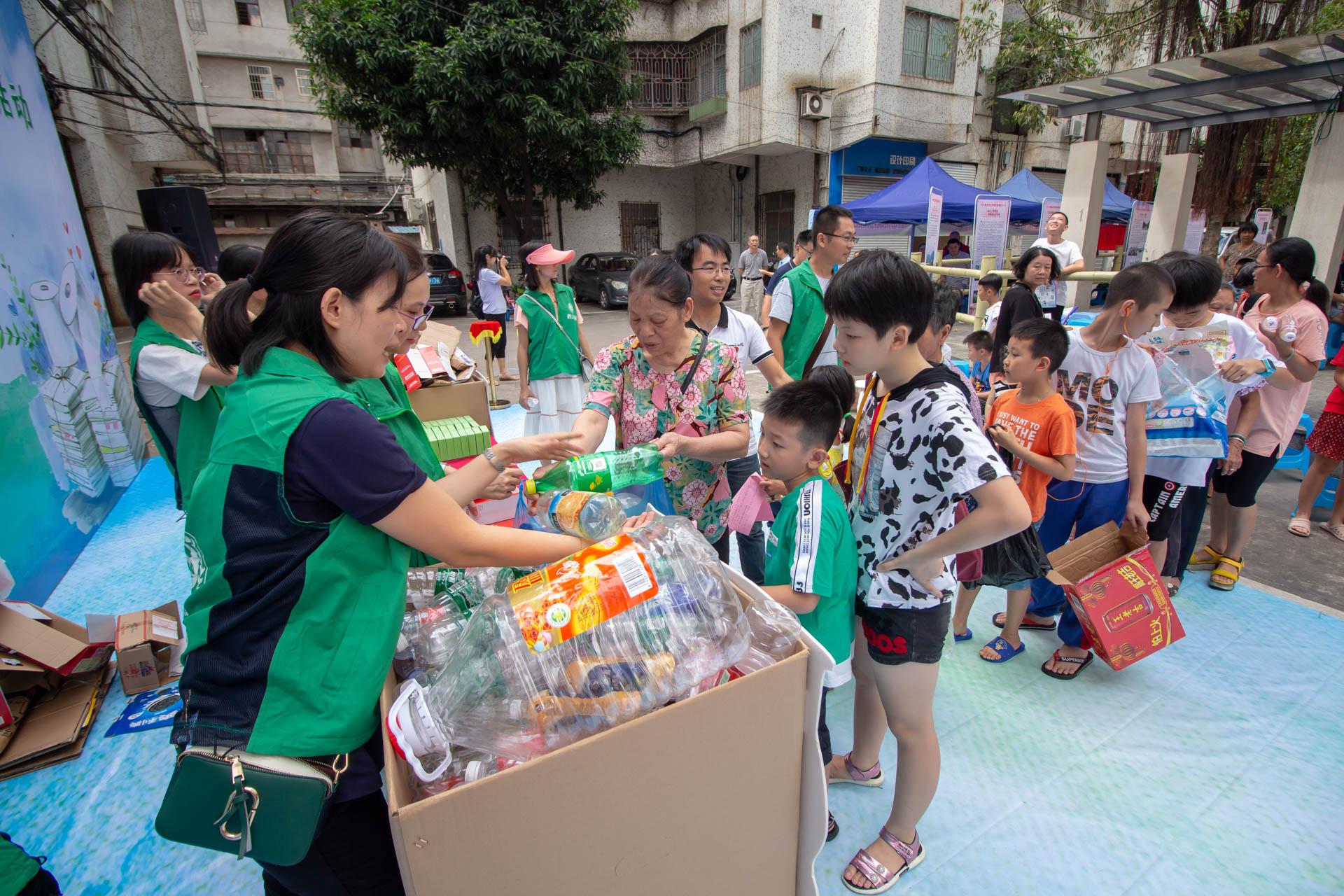 [市民杨女士]:“今天我来参加祥盛社区的环保活动,我觉得非常有意义。我自己也从家里带了瓶子,交换了水晶杯。做这个循环利用,对我们的环境起到了保护作用,我觉得非常好。”