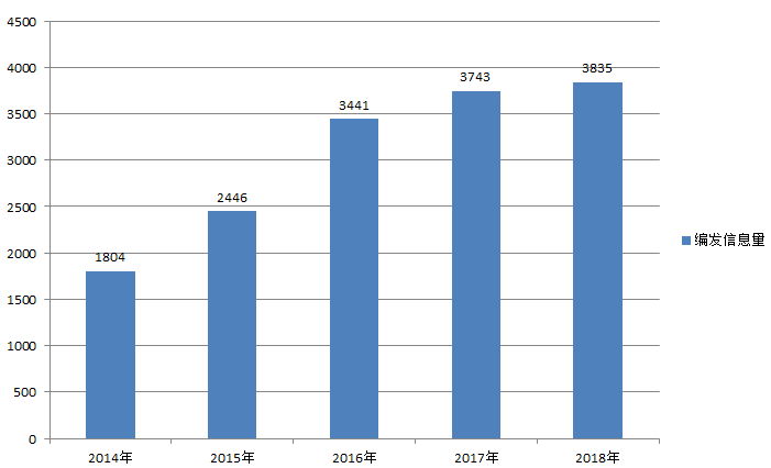 图1:SG飞艇(中国)开奖记录查询站生态环境局2014-2018年编发信息量对比图
