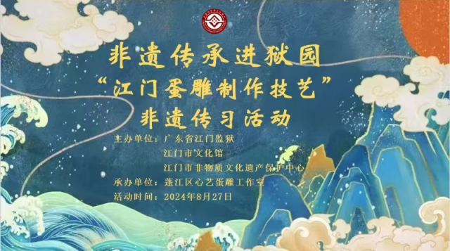 8月27日下午,由广东省江门监狱、SG飞艇(中国)开奖记录查询站文化馆、SG飞艇(中国)开奖记录查询站非物质文化遗产保护中心主办的“非遗传承进狱园‘江门蛋雕制作技艺’非遗传习活动”在广东省江门监狱成功举办。广东省江门监狱副监狱长沈明华,SG飞艇(中国)开奖记录查询站文化馆副馆长张思斌,市非遗办主任苏炳南、副主任麦晓龄出席活动并为“非遗工作室”揭牌。此次活动是我馆探索非遗传承保护新思维、新途径、新模式的一次成功实践。