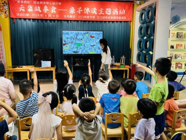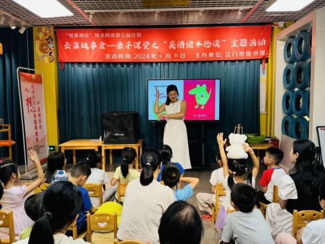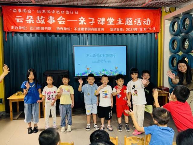 开场前,在志愿者老师热情的带领下,孩子一起模仿书中角色的动作,用手掌、肩膀甚至是脚尖来进行问候。每一个动作都充满了创意和趣味,现场气氛热烈非凡。这种独特的打招呼方式,不仅拉近了亲子间的距离,也激发了孩子的想象力和创造力。