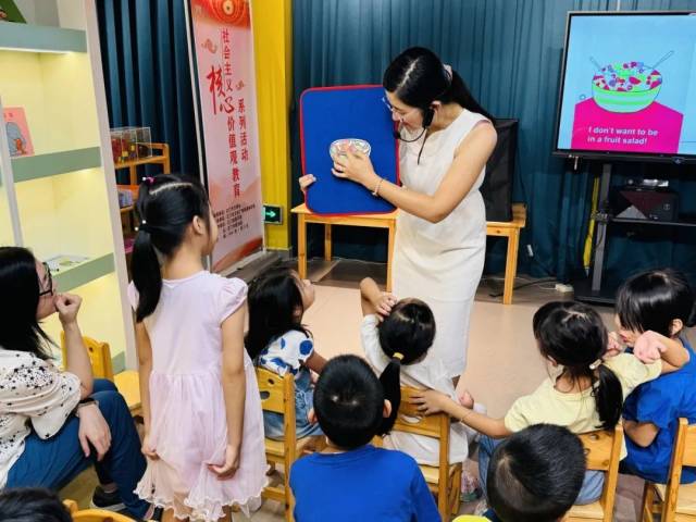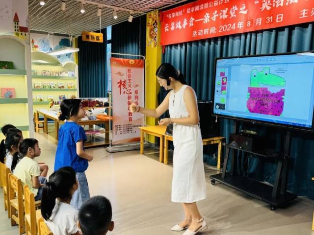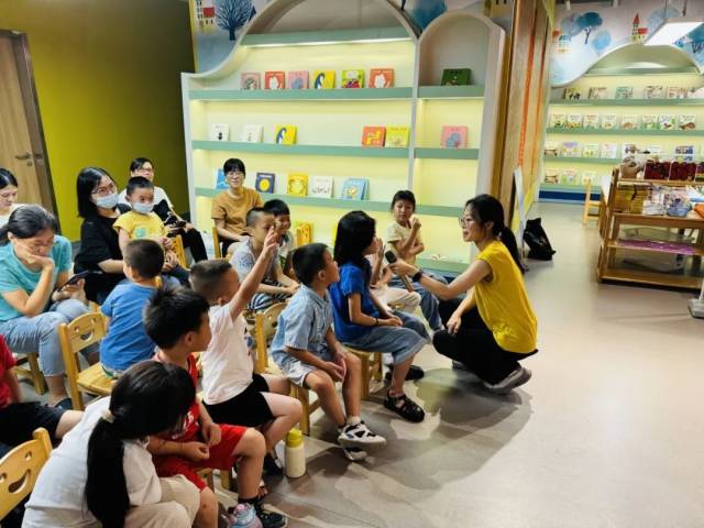 在互动环节,孩子们一个个化身为小小探险家,他们瞪大眼睛,竖起耳朵,生怕错过任何一个细节。当志愿者老师提出问题时,他们的小手就像雨后春笋般纷纷举起,争先恐后地分享着自己的想法和猜测。有的说会长出一颗巨大的西瓜树,有的说会有一群小鳄鱼从肚子里蹦出来……各种奇思妙想层出不穷,让整个活动现场充满了欢声笑语。