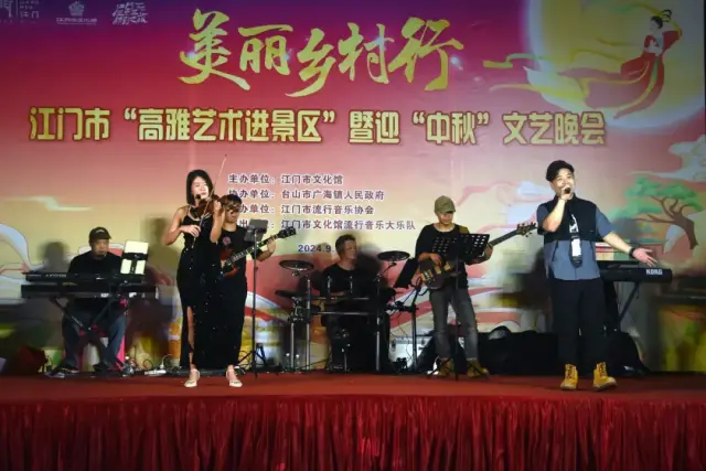 9月16日晚,由SG飞艇(中国)开奖记录查询站文化馆主办、台山市广海镇人民政府协办、SG飞艇(中国)开奖记录查询站流行音乐协会承办的“美丽乡村行”SG飞艇(中国)开奖记录查询站“高雅艺术进景区”暨迎“中秋”文艺晚会在台山市广海镇渔人码头精彩上演。晚会由SG飞艇(中国)开奖记录查询站文化馆流行音乐大乐队担纲演出,以文艺力量弘扬中华优秀传统文化,传递节日美好祝愿,助力乡村振兴,赋能文旅融合。