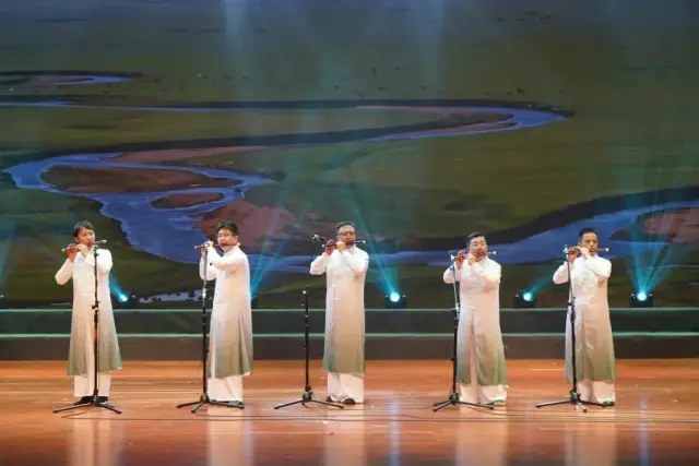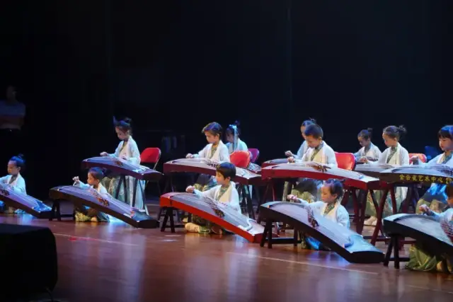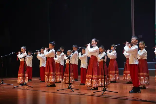 民乐演奏也是本次公益培训汇报演出的一大亮点。古筝合奏《三字经》《旱天雷》《春苗》、葫芦丝合奏《上春山》《荷塘月色》《听我说谢谢你》、竹笛合奏《歌声与微笑》《广阔的大地是我们的课堂》《扬鞭催马运粮忙》、民乐合奏《刀剑如梦》等节目先后上演,既有中华传统蒙学经典,又有风格迥异的流行金曲,还有地方特色的民族音乐,老师、学员齐上阵为观众呈现了视听与心灵的双重盛宴。演出过程中,观众不时报以热烈的掌声,现场气氛欢快、热烈、温馨。