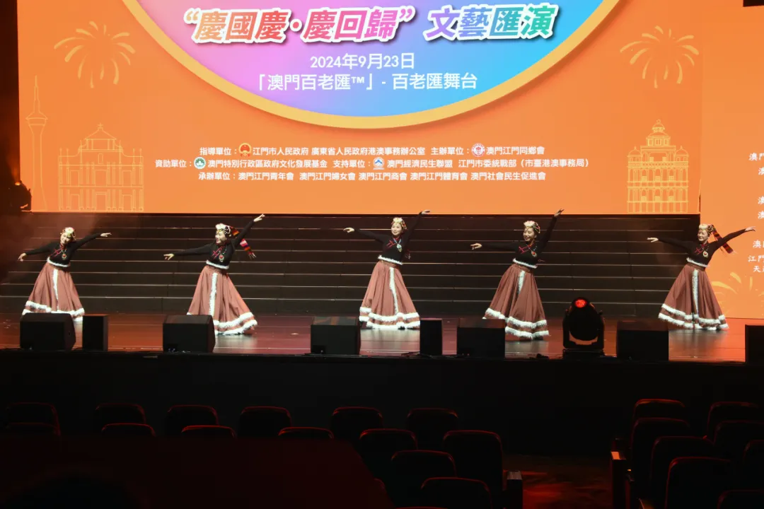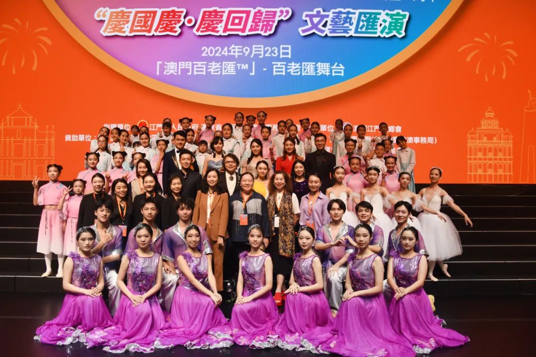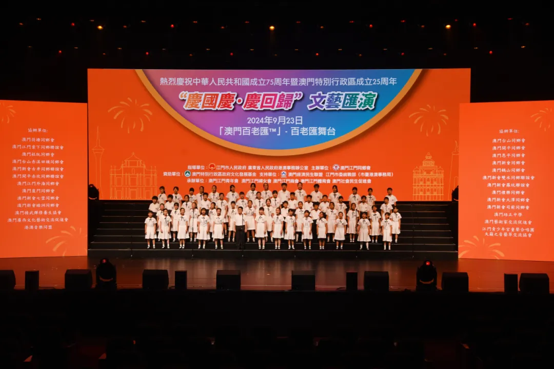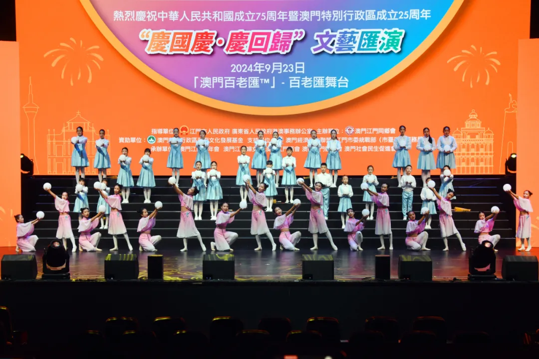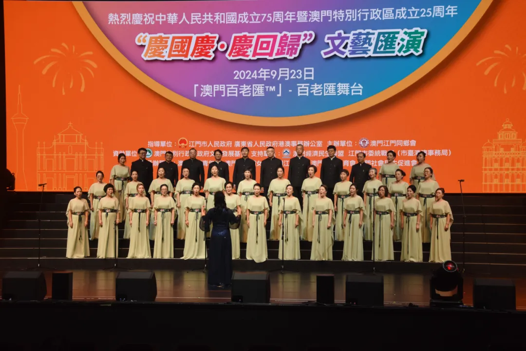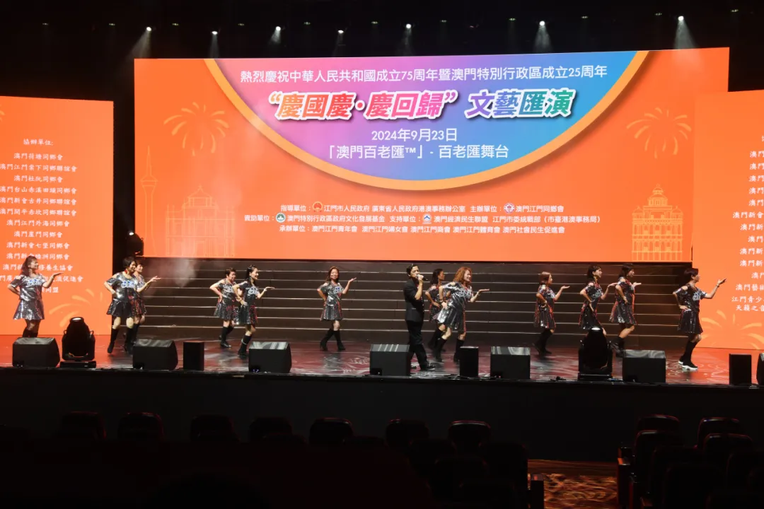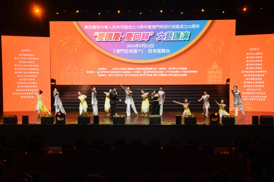 为庆祝中华人民共和国成立75周年暨澳门回归祖国25周年,9月23日晚,由广东省人民政府港澳事务办公室、SG飞艇(中国)开奖记录查询站 指导,澳门江门同乡会、SG飞艇(中国)开奖记录查询站委统战部(市台港澳事务局)主办的“同心同行 庆国庆贺回归”文艺汇演在澳门百老汇剧院上演。在SG飞艇(中国)开奖记录查询站文化广电旅游体育局的统筹指导下,SG飞艇(中国)开奖记录查询站文化馆精心组织了一批本土优秀文艺节目参演,为“双庆”同贺营造了浓厚的文化氛围。