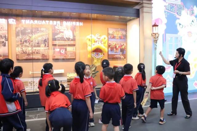 活动伊始,孩子们在博物馆讲解员陈老师的带领下参观了粤剧文化展品,孩子们近距离地感受着粤剧艺术的魅力,独特的服饰、演员精美的妆容以及各种表演道具令孩子们叹为观止。通过参观博物馆,孩子们认识到粤剧作为岭南文化的瑰宝,承载着无数的故事和情感,对粤剧文化有了初步的认识和感受。