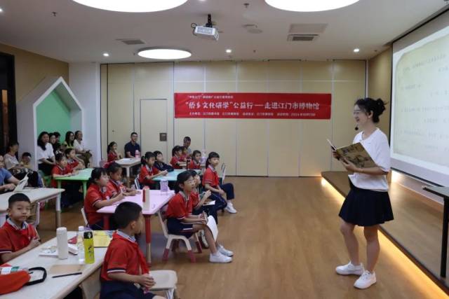 最后,为了让孩子们更好地了解五邑本土文化,活动设置了英文科普环节。江门职业技术学院英语教研室陈嘉恩老师用简单易懂的英文介绍了五邑地区的特色文化,如碉楼、陈皮、小鸟天堂、温泉等。孩子们积极参与互动,学习了一些与本土文化相关的英文词汇和表达。通过这个环节,孩子们不仅提高了英语水平,同时增强了对家乡文化的认同感和自豪感。