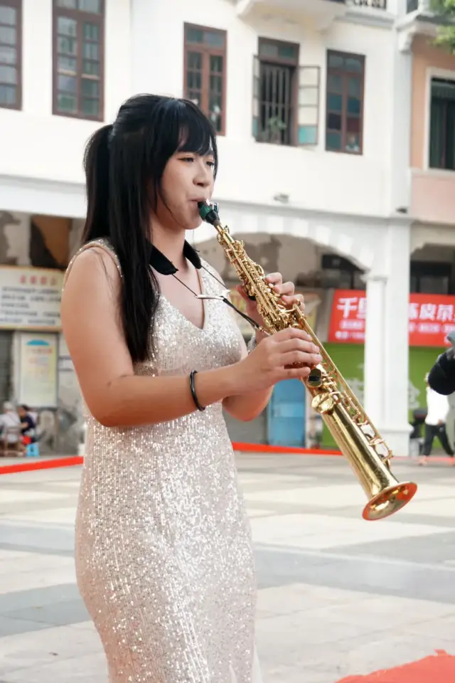 当《特别的人》深情的旋律响起,音符轻轻跳跃,让午后的广场瞬间变得生动起来。紧随其后的《爱我别走》引起观众共鸣,不少人轻声附和,陶醉其中;《My love》《Stay with me》两首英文曲目,则完美诠释了什么叫“音乐无国界”;《月半小夜曲》熟悉的经典旋律,更是勾起了无数人心中的温柔回忆;《Fly me to the moon》慵懒而又迷人的乐声,让现场观众如沐春风,意犹未尽。一位前来墟街游玩的游客赞叹道:“这真是一场心灵的音乐会,让我感受到了江门的文化底蕴和城市活力。”而附近的居民李先生则表示:“演出就在家门口,我几乎每周六都来看,希望市文化馆以后多举办这样的活动。”