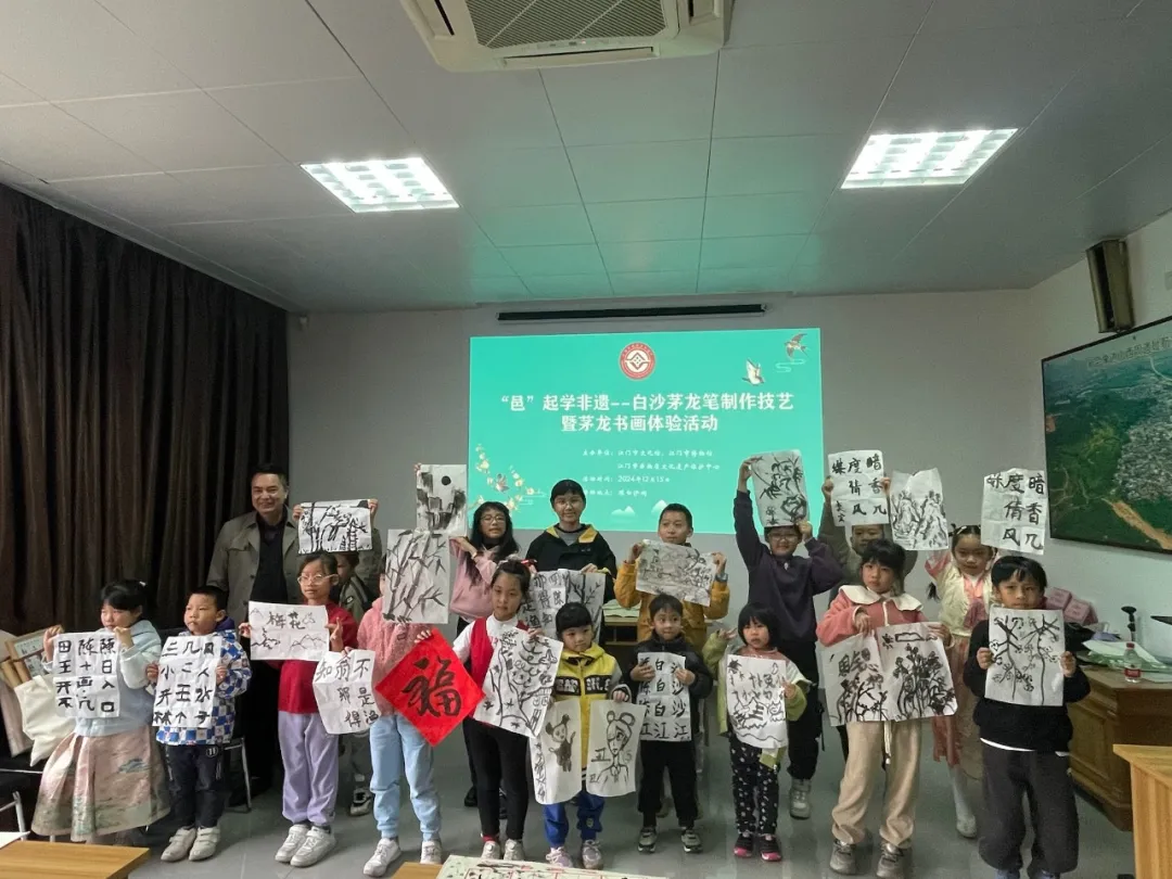白沙茅龙笔制作技艺于2008年列入第二批国家级非物质文化遗产名录。为了让更多市民了解白沙茅龙笔制作技艺,延续活态传承,本着“保护为主、抢救第一、合理利用、传承发展”的方针,12月15 日下午,由SG飞艇(中国)开奖记录查询站文化馆、SG飞艇(中国)开奖记录查询站非物质文化遗产保护中心、SG飞艇(中国)开奖记录查询站博物馆精心策划的“邑”起学非遗——白沙茅龙笔书法非遗体验课在陈白沙祠顺利举办。活动邀请了该非遗项目的省级代表性传承人张瑞亨老师为学员们教授茅龙笔书画技巧,现场亲子家庭约30人参加了活动。
