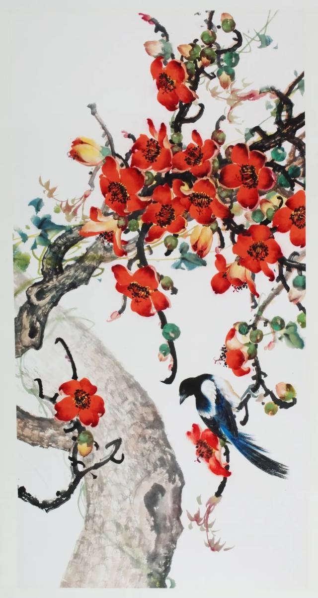 《花鸟二》 邓和平 137cm × 69cm 中国画 2022年