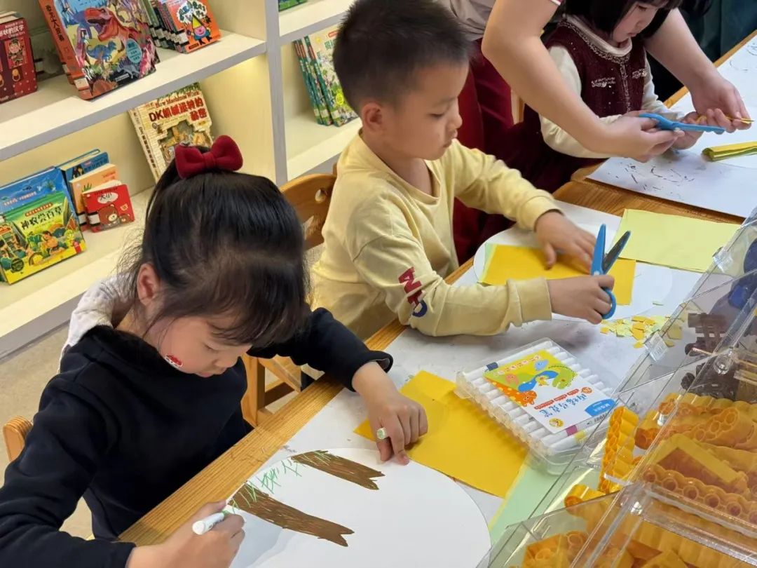 最后的手工创作环节,孩子们化身为“快乐地球小卫士”,进行环保主题手工创作。有的制作出立体的绿色家园,有的用树枝搭建了小树屋,还有的画出了守护森林的小动物,每一件作品都饱含着孩子们对大自然的热爱与守护之情。