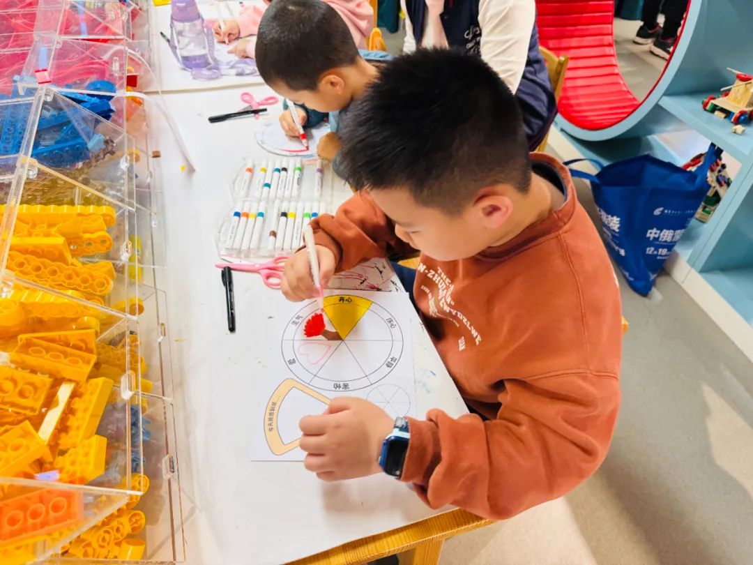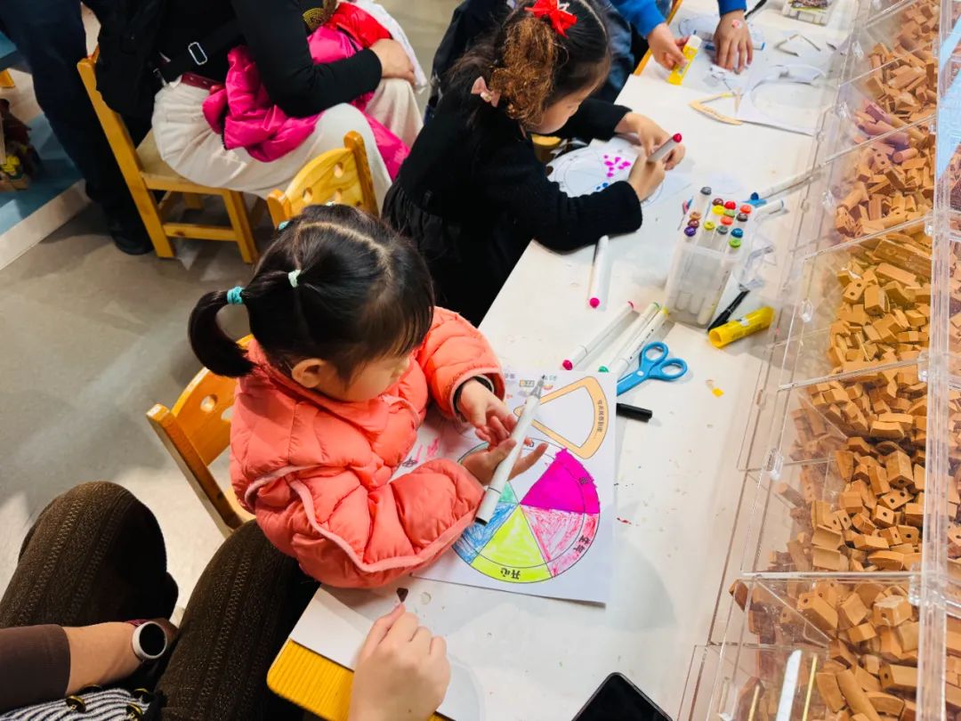 故事讲完后,进入了创意手工环节 —— 制作 “自己家的气象情绪转盘”。孩子们迫不及待地拿起画笔,在纸上认真描绘着自己家庭中的各种场景,并依据当天家庭成员的心情,用不同的气象元素进行标注。一个个充满爱意与童趣的家庭气象情绪转盘在亲子共同努力下诞生。