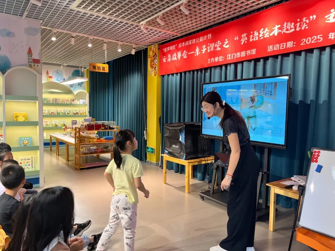 接下来进入绘本讲读环节。志愿者老师不仅详细解读了绘本中的英语词汇和句子,还通过生动的表情和动作,将故事中的情节展现得活灵活现。孩子们积极参与互动,大胆跟读英语句子,遇到不懂的地方,纷纷举手提问。老师耐心地解答,引导孩子们深入理解故事内容,鼓励他们用英语表达自己的想法。