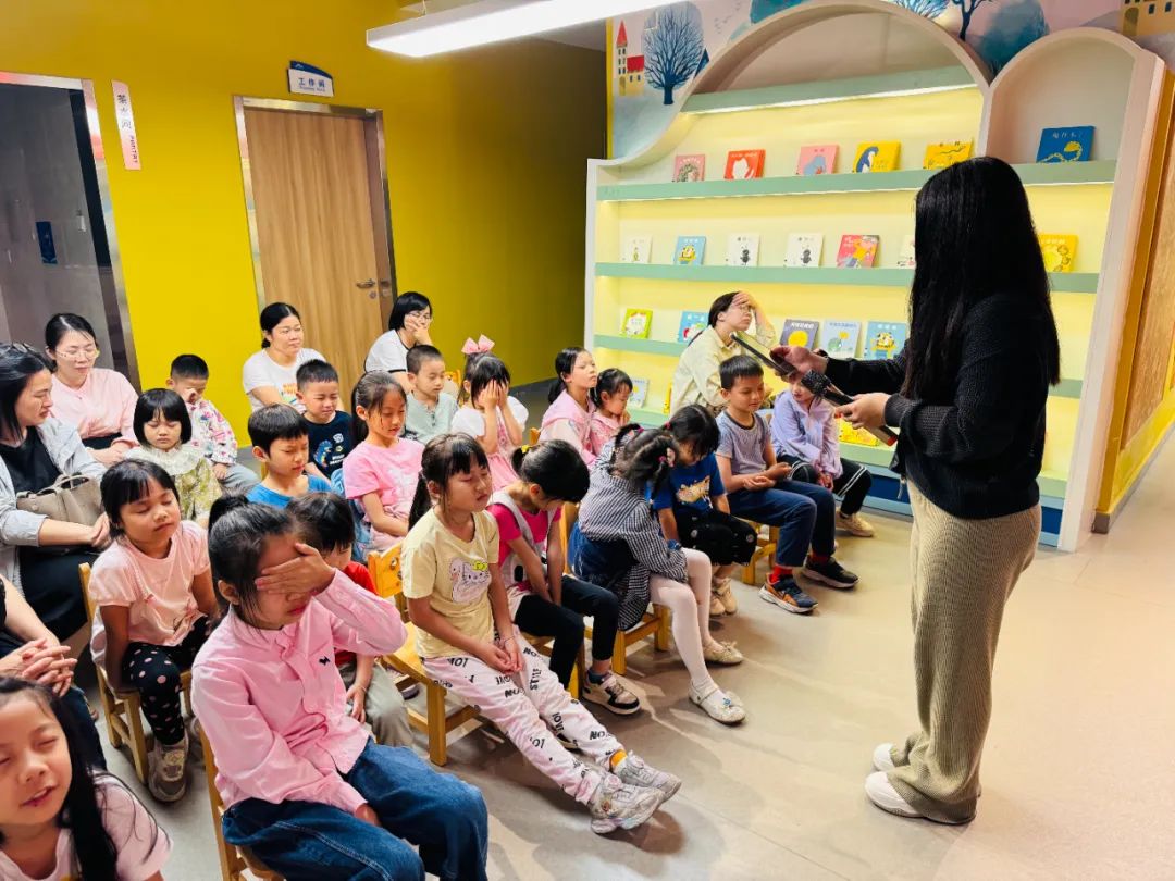 活动开场,文化志愿者老师为大家讲述《森林图书馆》的故事。在森林深处,那幢宁静的杉树房子是猫头鹰的家,爱书的猫头鹰一直独自生活,鲜有人来访。直到有一天,小兔和小狐狸偶然间闯入,发现了满屋子丰富的书籍。自那以后,它们每日都来这里读书,消息传开,森林里的其他动物也纷纷前来。随着读书的动物越来越多,一系列问题接踵而至,猫头鹰开始思考:如何让大家安静读书、怎样帮大家从众多书籍里找到心仪之书、又该如何应对读书犯困的动物…… 孩子们和家长们都听得入神,仿佛自己也置身于那奇妙的森林图书馆中,感受着故事里的点滴变化。