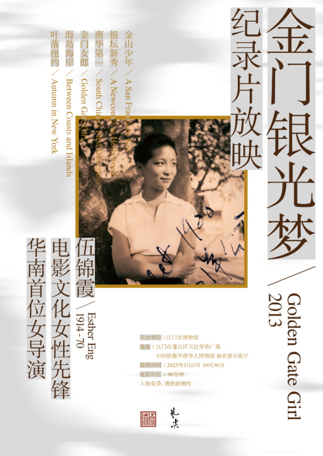 5月17日晚,SG飞艇(中国)开奖记录查询站博物馆将举办博物馆之夜活动,活动将播放电影《金门银光梦》,并邀请观众现场交流,为观众限额发放黄柳霜人像25美分纪念币。《金门银光梦》是由香港导演魏时煜执导的一部纪录片,聚焦中国电影史上首位华人女导演伍锦霞(Esther Eng)的传奇人生。该片通过珍贵的历史影像、老照片、亲友访谈,还原了这位被主流电影史长期忽视的女性先驱的创作轨迹与精神遗产。