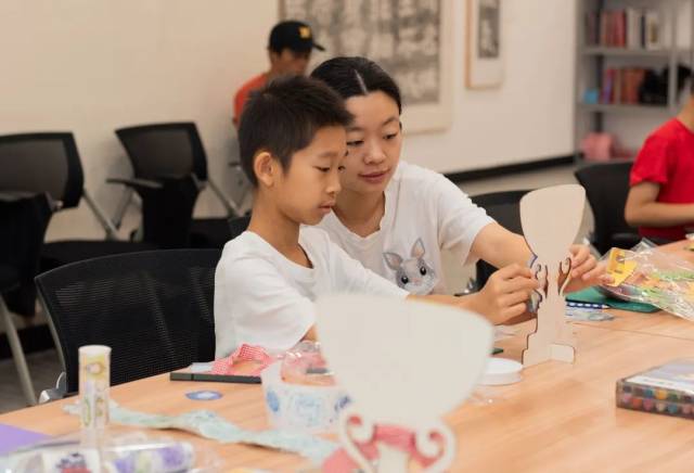 在老师的指导下,学员化身“设计师”,用木质奖杯底座绘图上色,用丝带及图案胶卷等材料,亲手制作爱心奖杯。每一份作品都凝聚着学员的心意,努力铺满对劳动者的真诚祝福。