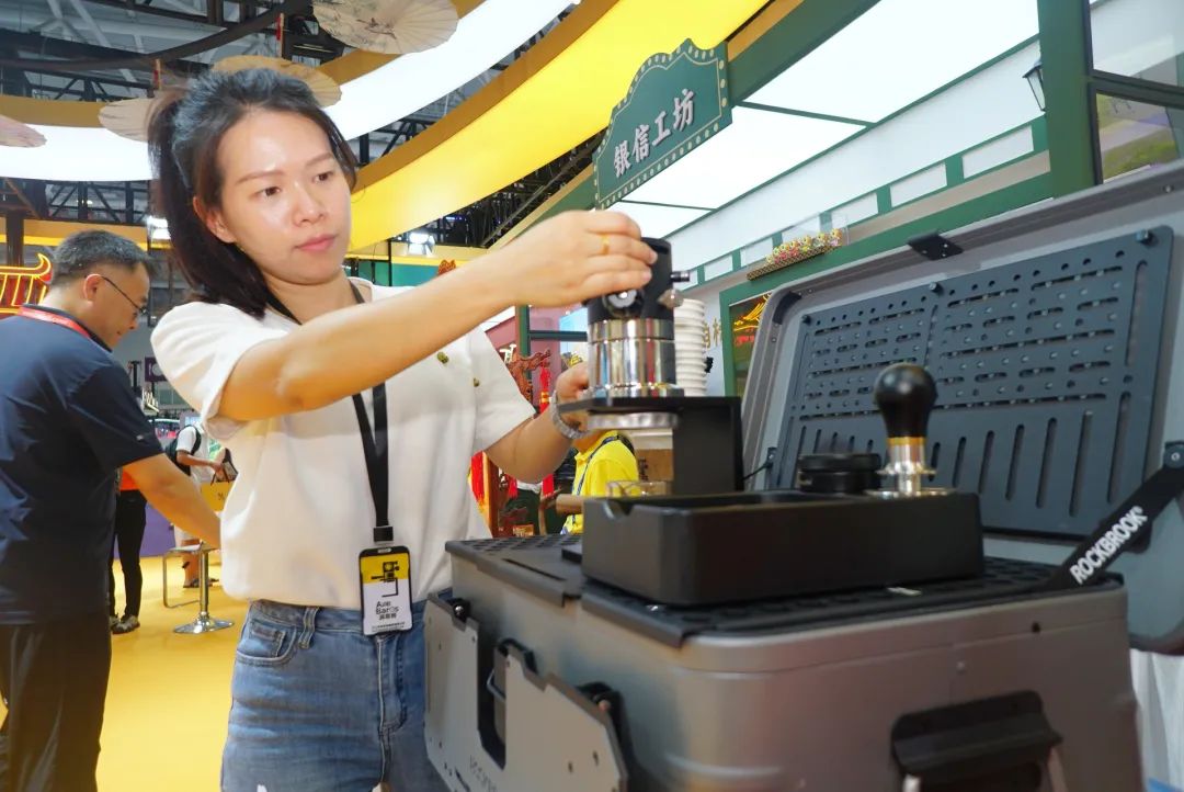 江门展区以“唐人街”为设计灵感,通过“江门商号、银信工坊、五邑茶坊、跟着影视游江门”四大板块构建文化叙事空间。在现场,来自不同国家的外籍客商来回穿梭,了解江门的文创精品、非遗技艺、陈皮产业、特色旅游、影视文化等。